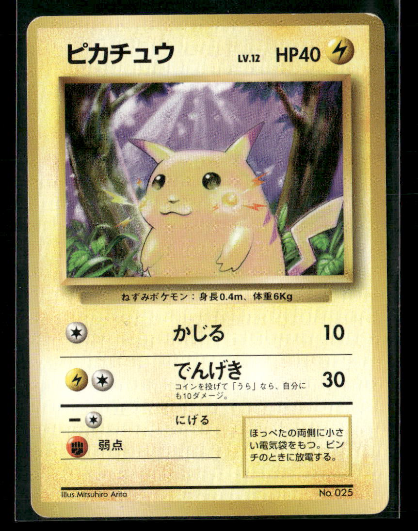 Pikachu No.025 No Rarity Symbol Base Set Japanese Pokemon Card LP-NM