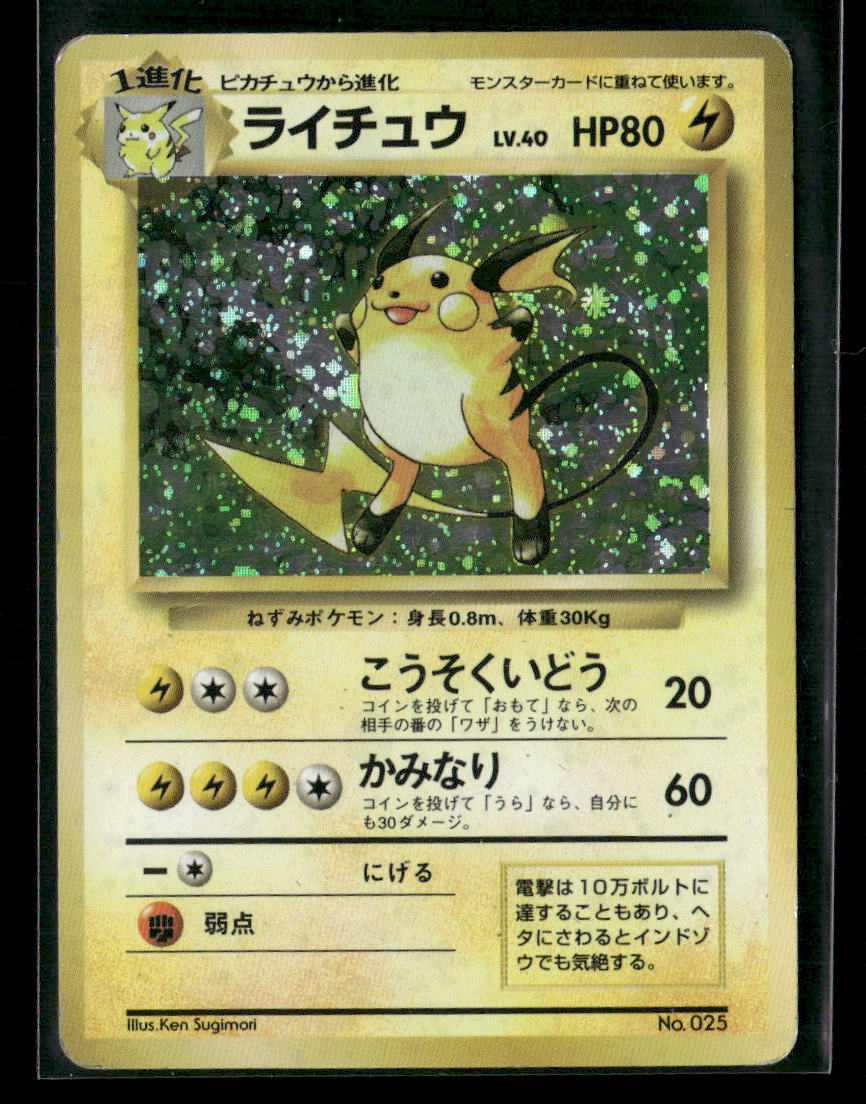 Raichu No.025 Holo No Rarity Symbol Base Set Japanese Pokemon Card Played