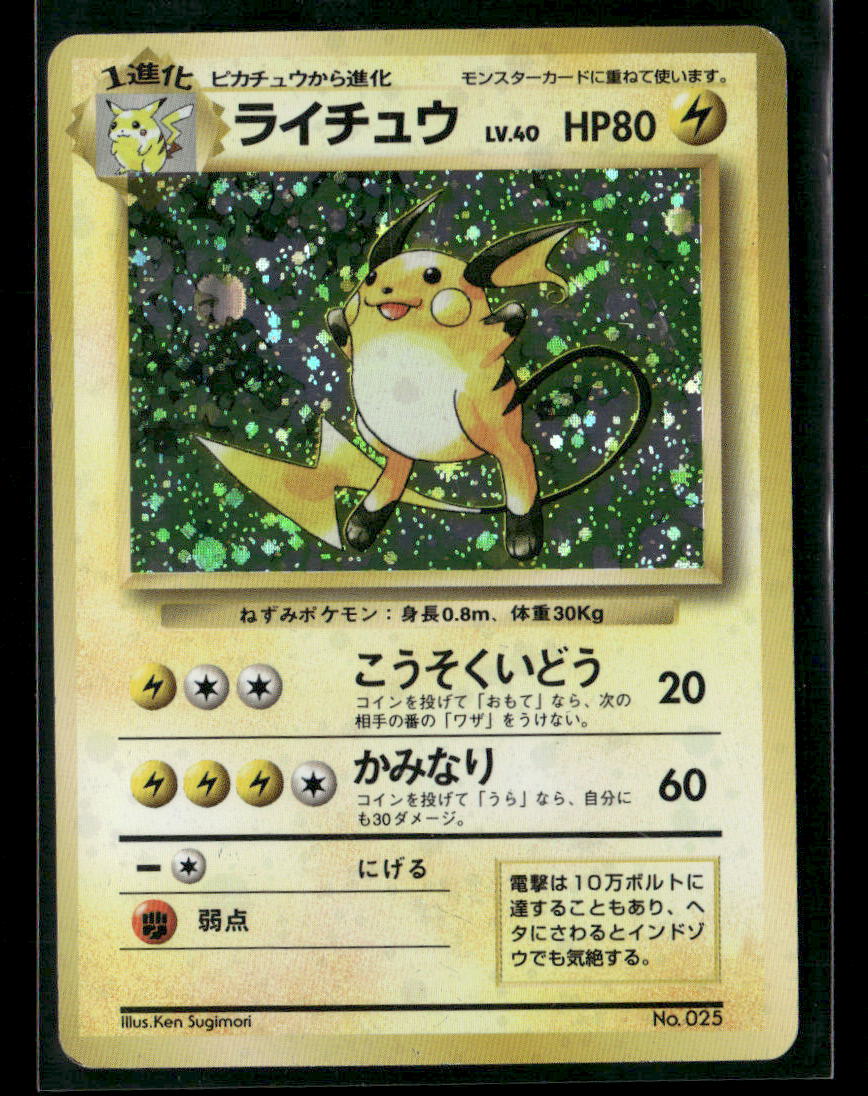 Raichu No.025 Holo No Rarity Symbol Base Set Japanese Pokemon Card MP