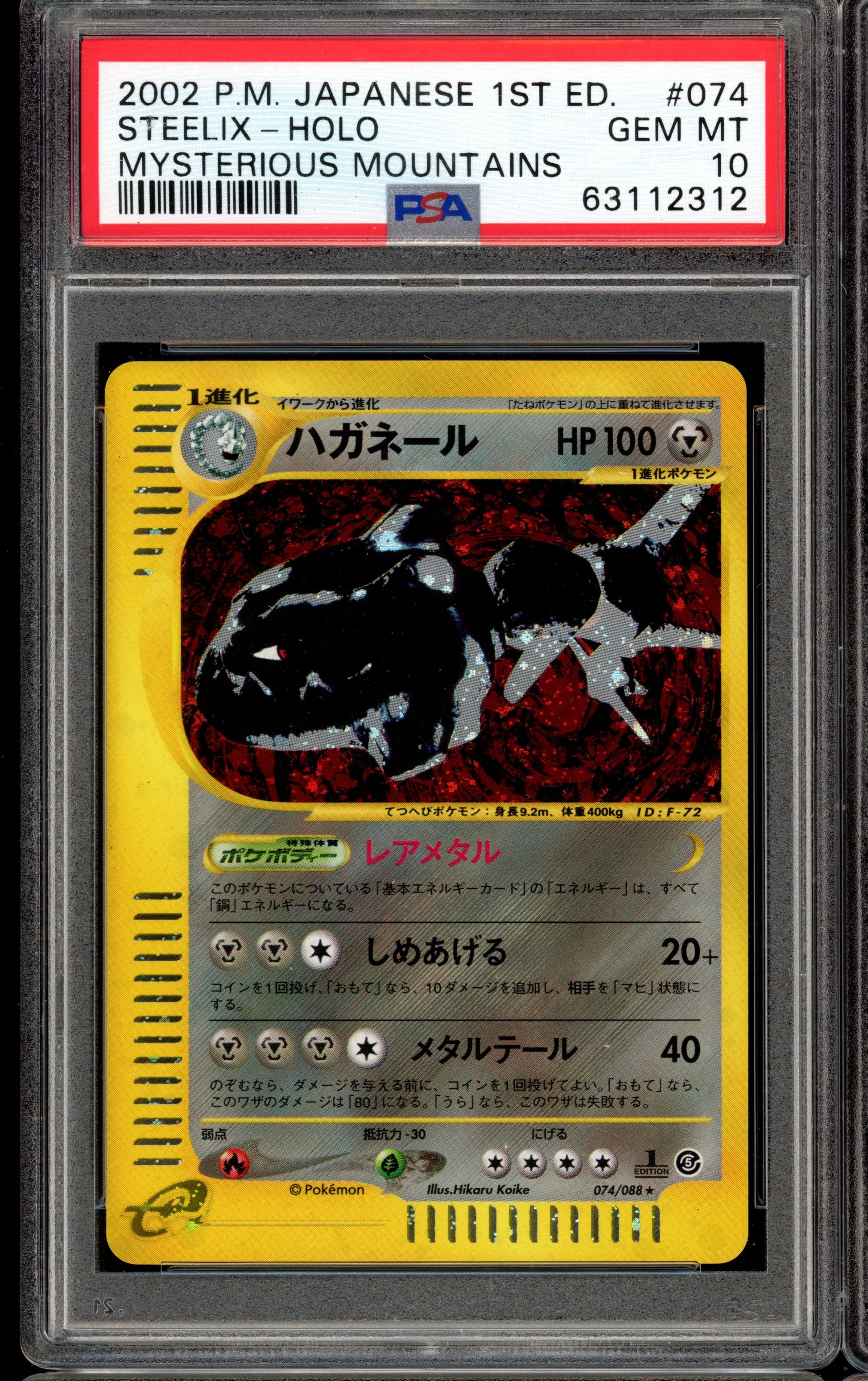 2002 PSA 10 Steelix Holo #074 Mysterious Mountains 1st Ed Japanese Pokemon Card