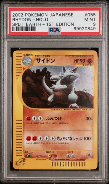 2002 PSA 9 Rhydon Holo #055 Split Earth 1st Edition Japanese Pokemon Card