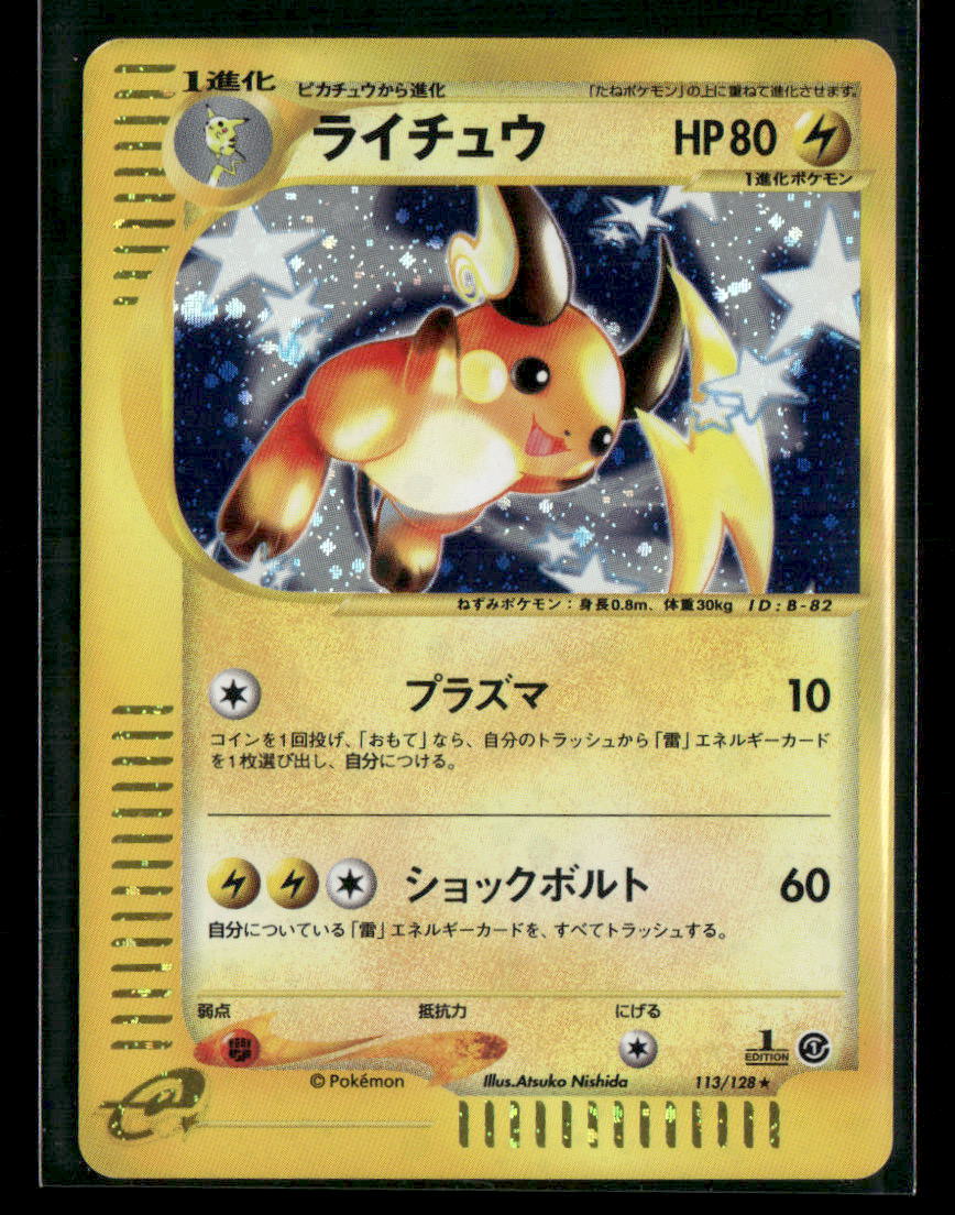 Raichu 113/128 Holo 1st Edition Expedition Japanese Pokemon Card Played